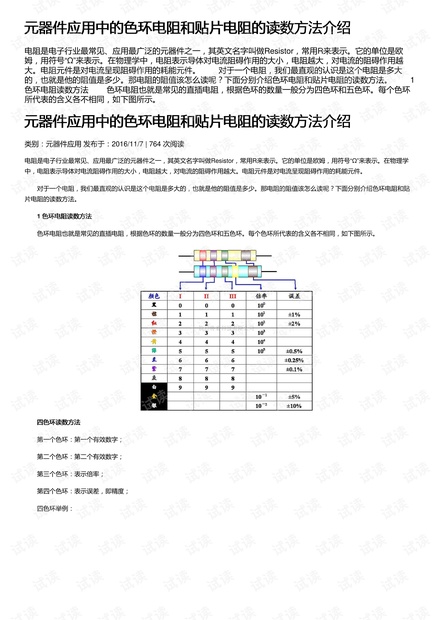 需要特别注意的是:四环电阻的偏差环(第四环)通常是金色或银色,而五环电阻的偏差环颜色可能与有效数字环相同,读取时容易搞反,务必先确认起始环的位置-。