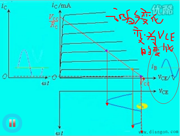 饱和失真的本质:在功放电路中,当输入信号的正半周幅值过大,超过放大管的动态范围时,晶体管或场效应管进入饱和区,集电极电流不再随基极电流增加而增加,输出信号波形的顶部被削平(削顶),导致音频声音浑浊、破音刺耳。饱和失真的根本原因是静态工作点Q设置过高——即集电极-发射极电压VCE偏低,或基极偏置电流偏大,导致放大管离饱和区太近,稍大的输入信号就会触及饱和边界-。